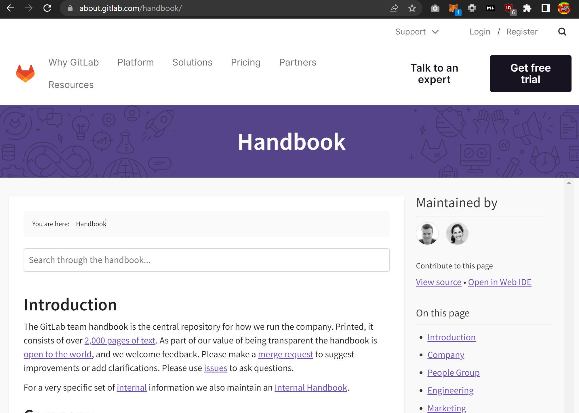 그리고 gitlab은 고맙게도 open soruce라고 명시했고 handbook minimum set이 공개되어 있다.