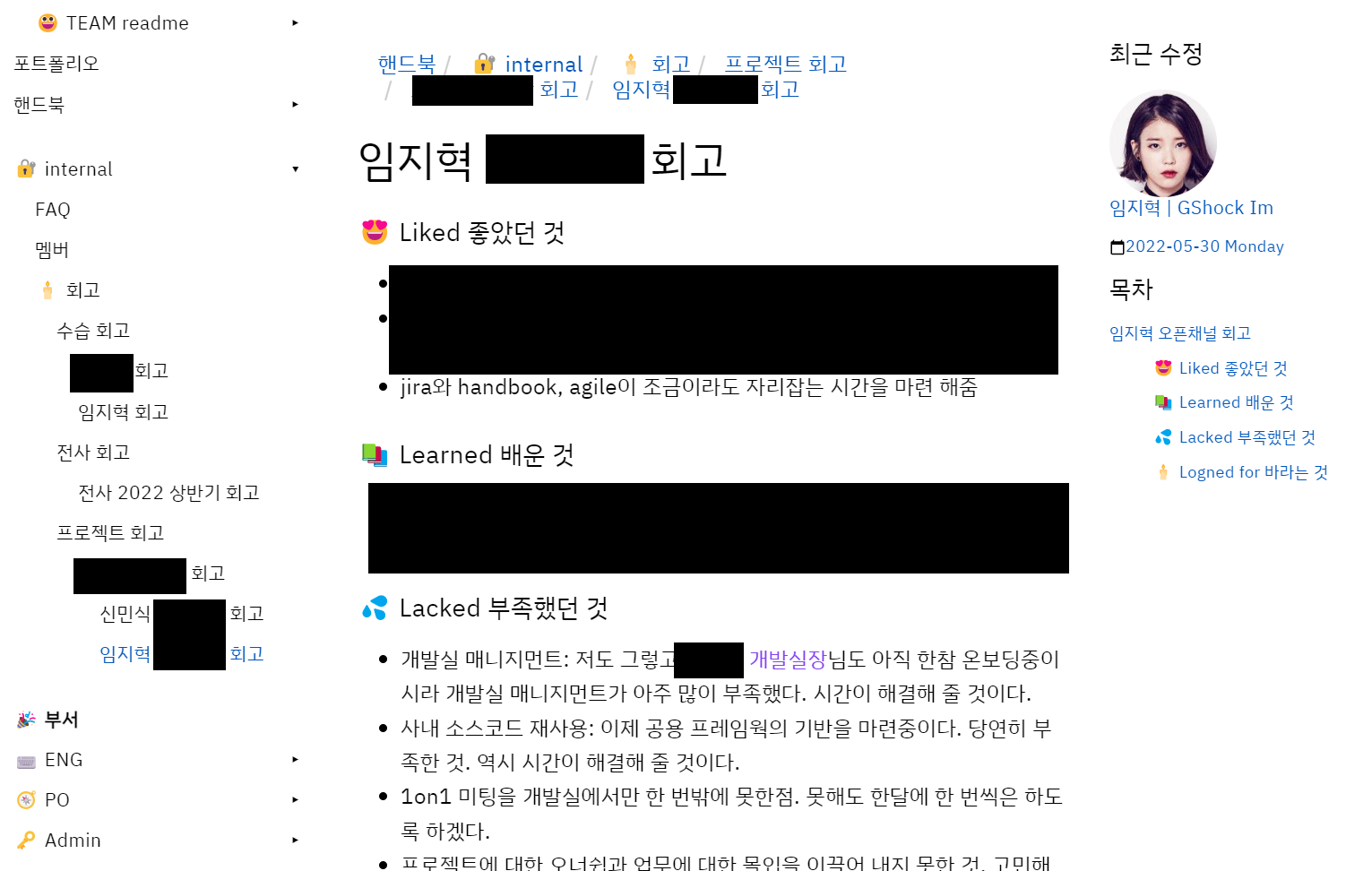 이제 막 A시리즈 투자를 받기 직전의 스타트업이라 업무 workflow가 안정화 되지 않은 상태라 내가 하고싶은대로 모두 변경할 수 있었기에 정식 입사하자 마자 당일날 바로 핸드북을 만들고 문서 작업을 시작했다. 처음에는 나혼자 거의 모든 문서를 작성했지만 이제 좀 내용이 붙어가고 있다.